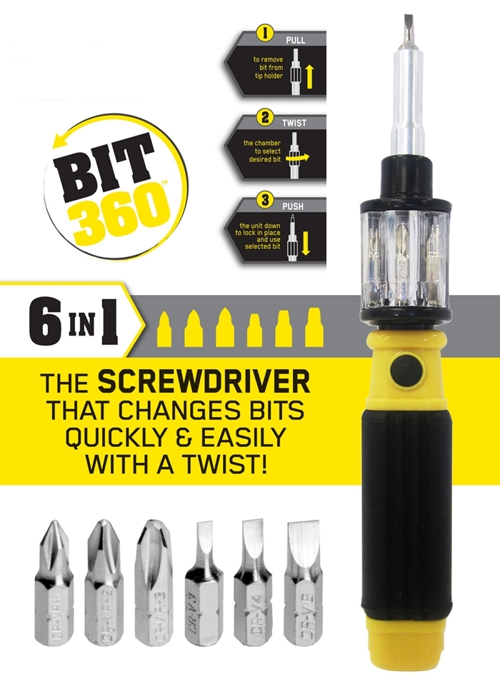Običajno bi za šest različnih vijakov potrebovali šest različnih izvijačev - a s pomočjo izvijača Bit 360 lahko za odličen oprijem prav vseh vijakov poskrbite v le nekaj sekundah.