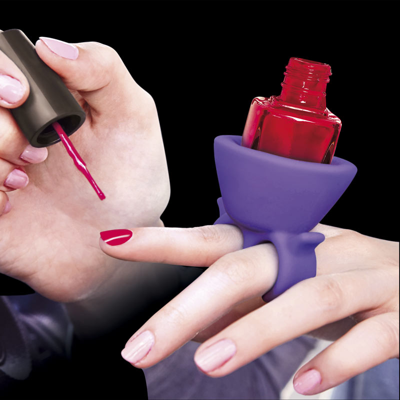 Nosilec za lak za nohte je neverjetno uporabna inovacija. Nosilec enostavno držite med prsti in vam tako omogoča lakiranje vaših nohtov v popolnem udobju. Steklenička z lakom je zaradi inovativnega dizajna močno priterjena v nosilec in je ves čas varno na vaši roki.